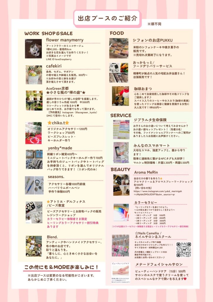アクセサリーや雑貨、世界で1つだけの作品を作れるワークショップ、アロマやビューティー